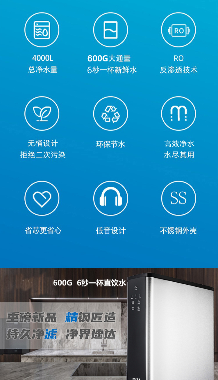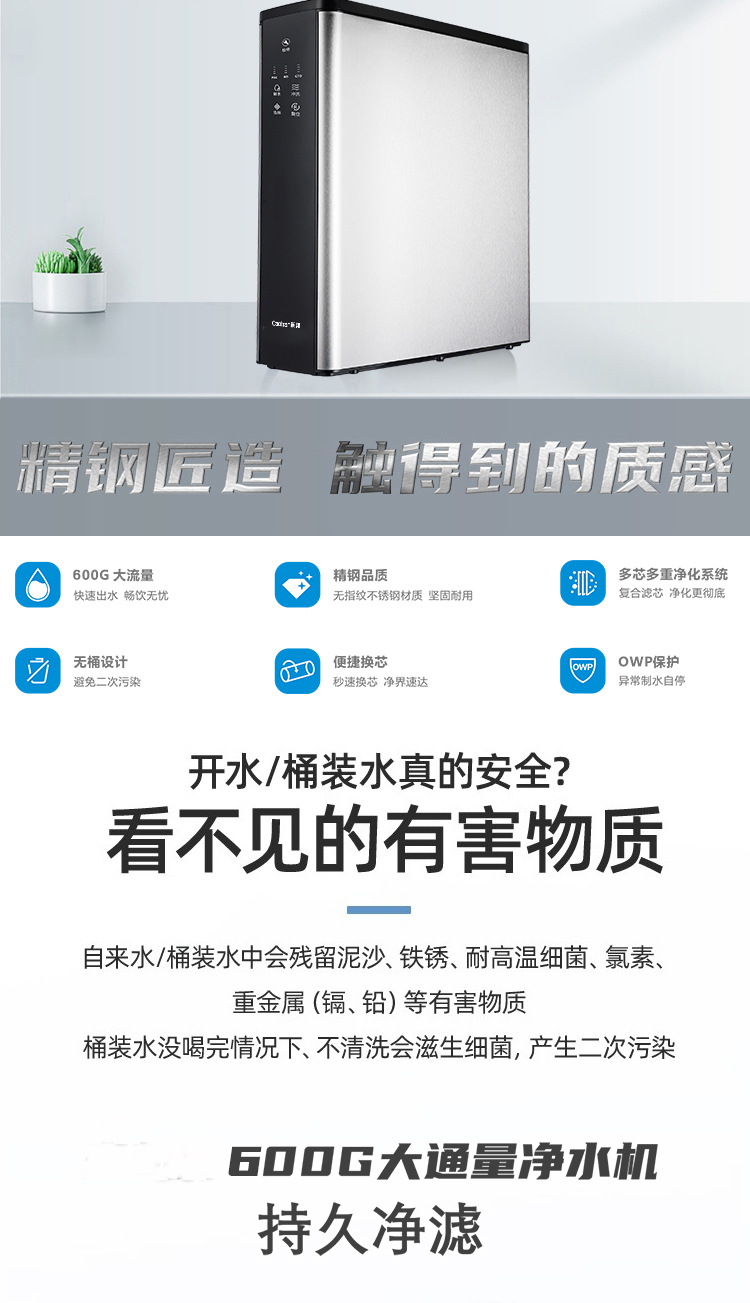 600G大流量;多芯多重凈化;無桶設計;便捷換芯;OWP保護;