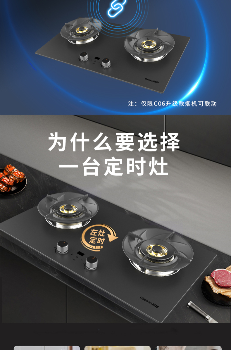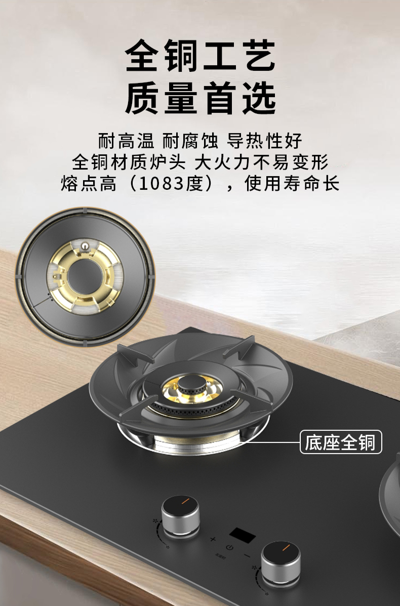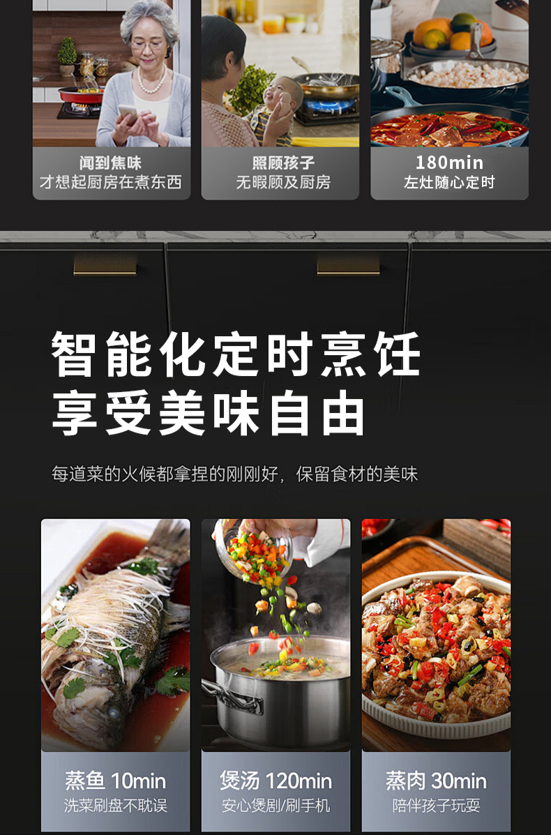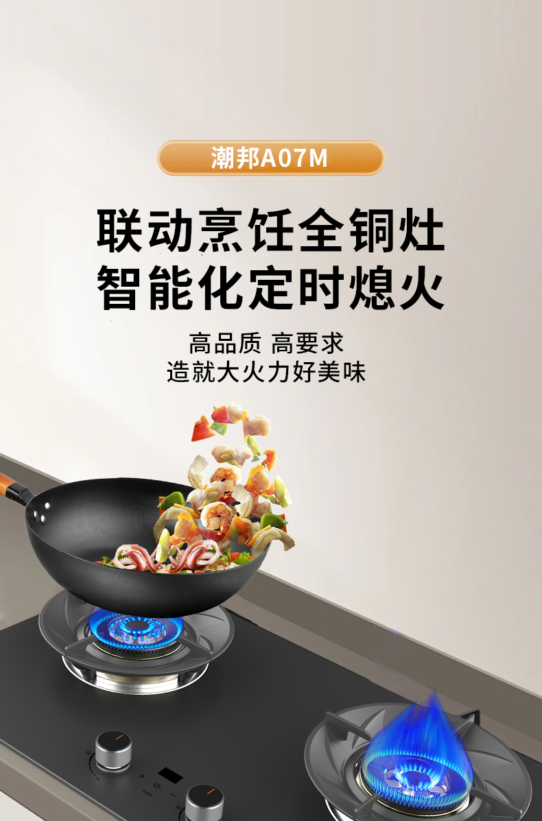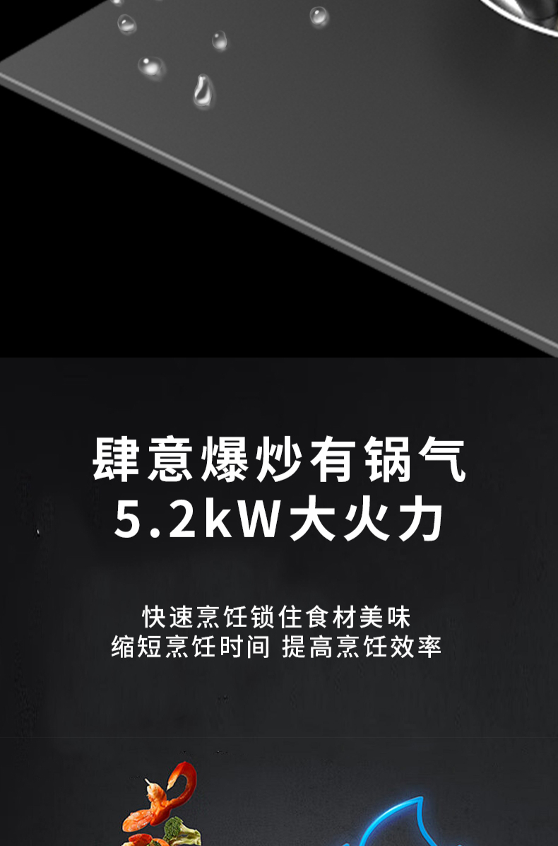 大火力,70%熱效率;智能煙灶聯(lián)動;全銅燃燒器;完全可拆分設(shè)計;主動熄火保護;