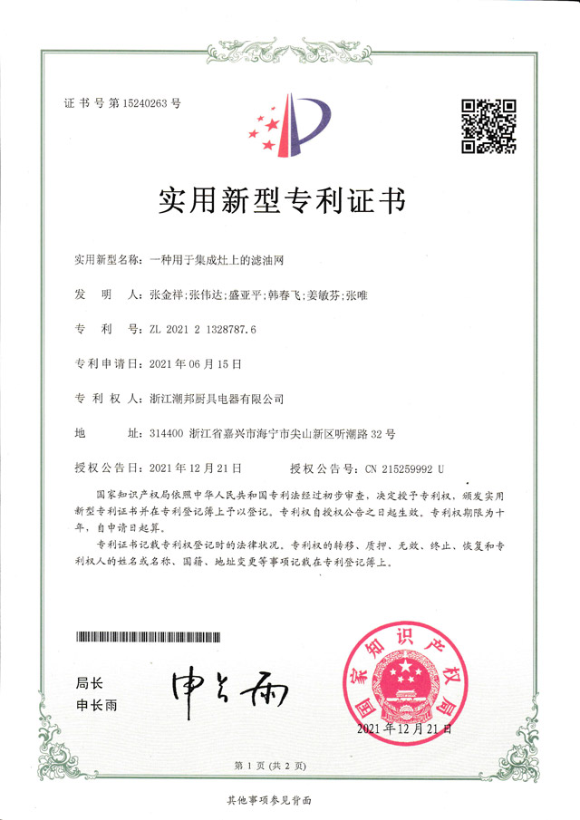 為了創(chuàng)造健康舒適的廚房體驗,我們不斷在廚電產(chǎn)品研發(fā)上精益求精。 2009年至今,潮邦獲得近百項發(fā)明專利和證書,同時獲得國內眾多獎項,穩(wěn)居廚電行業(yè)翹楚,開創(chuàng)中國集成廚房新時代。