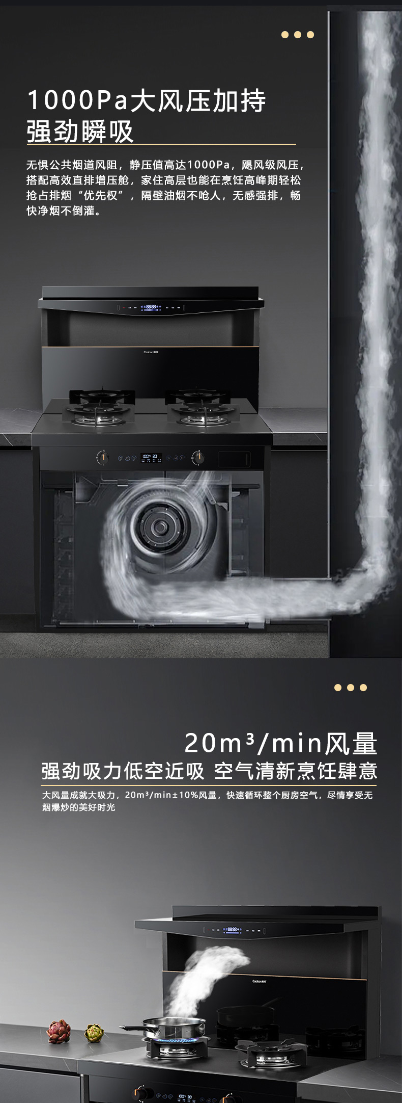 1000Pa風(fēng)壓,智能變頻電機(jī),揮手智控,一體瓷膜內(nèi)膽。